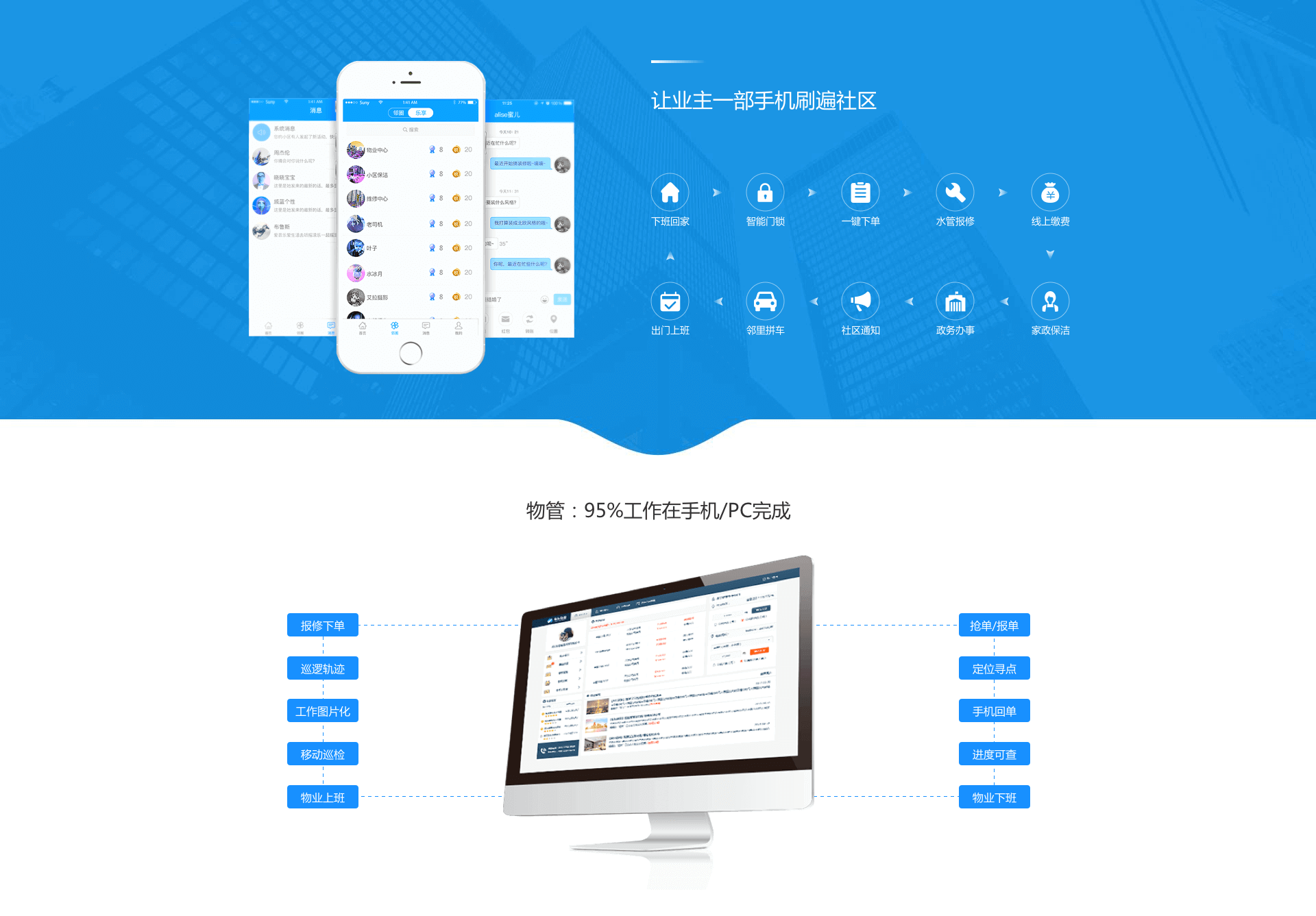 支持多行業(yè)多場景,覆蓋多種社區(qū)物業(yè)O2O范圍