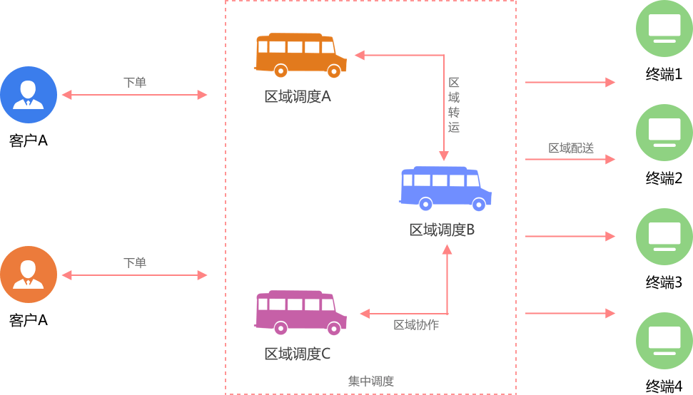 集中調(diào)度采用不區(qū)分作業(yè)平臺的方式,對所有作業(yè)平臺下的訂單進行調(diào)度。區(qū)域中心調(diào)度采用區(qū)分作業(yè)平臺的方式,各平臺的訂單只能由本平臺進行操作。